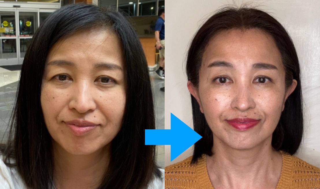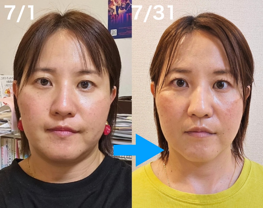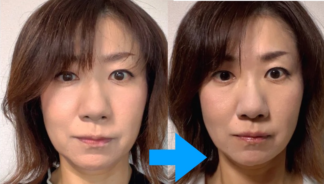 お顔は激変!長くなったお顔は短く、整い、目も開けやすくなり口角も上がるようになり、自分の手で自分のお顔が変えられるなんてすごいですね!