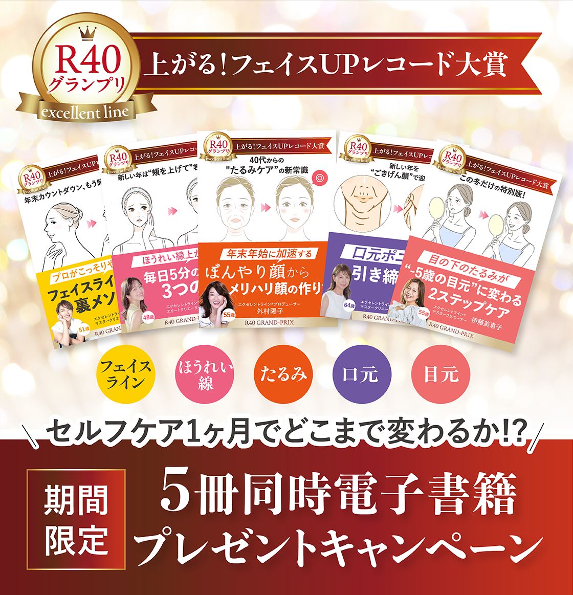【4/20初出版前の豪華特別企画】 初出版前の今だけの特別配布 お顔が上がれば人生が上がる。次はあなたへ。“5つのギフトBOOK”を受け取ってください。 メールアドレス必須 プライバシーポリシー/特定商取引法