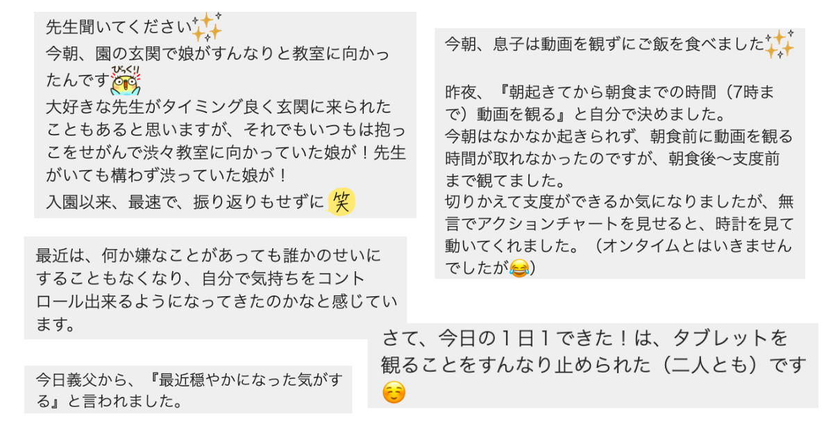 など、お子さんが怒らずに自分で動くことが増え