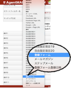 (2)条件2で「登録フォーム登録日時」を選択します。