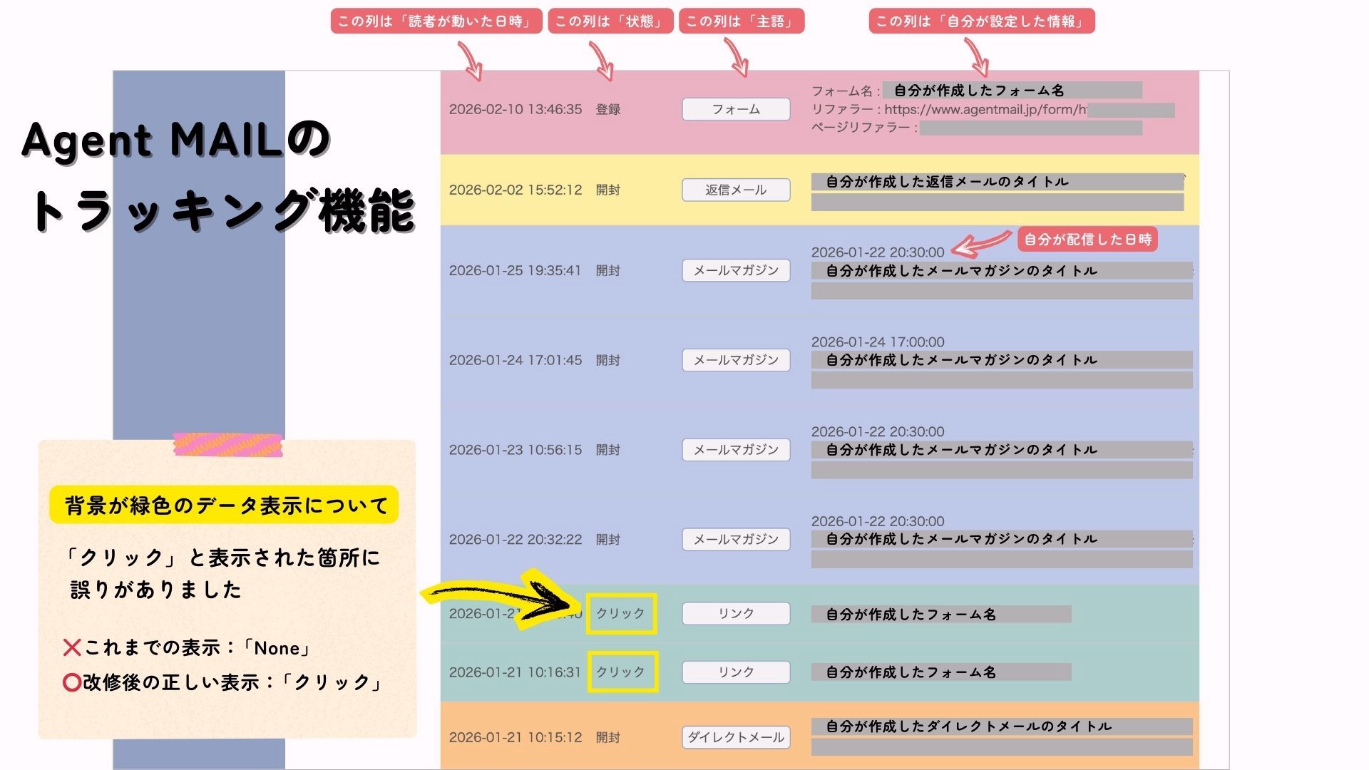 Agent MAILトラッキング機能|表示の一部を改修しました