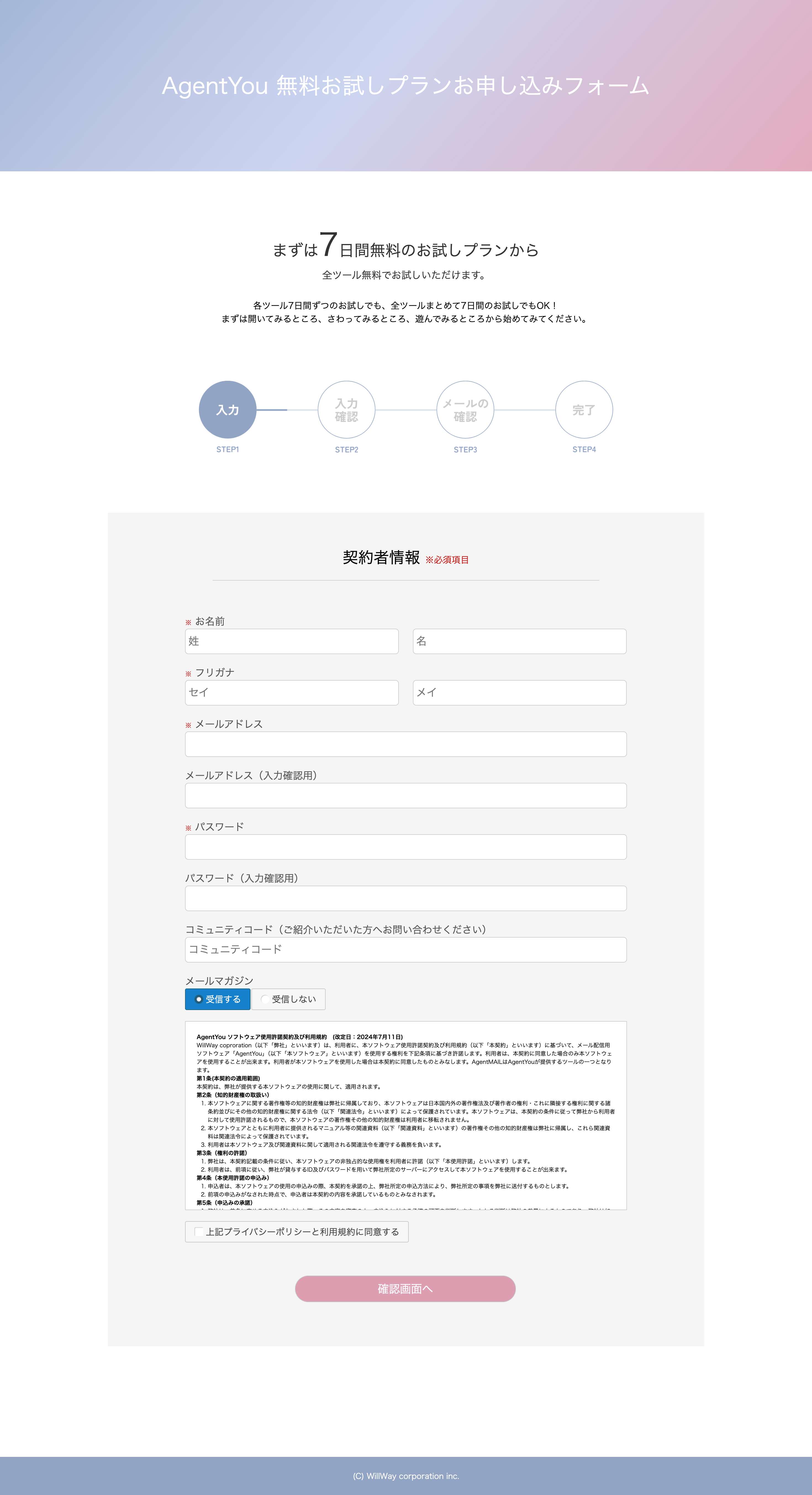 まだAgentYouをご利用されたことがない方は、AgentYou公式サイトより事前に無料登録をお願いいたします。