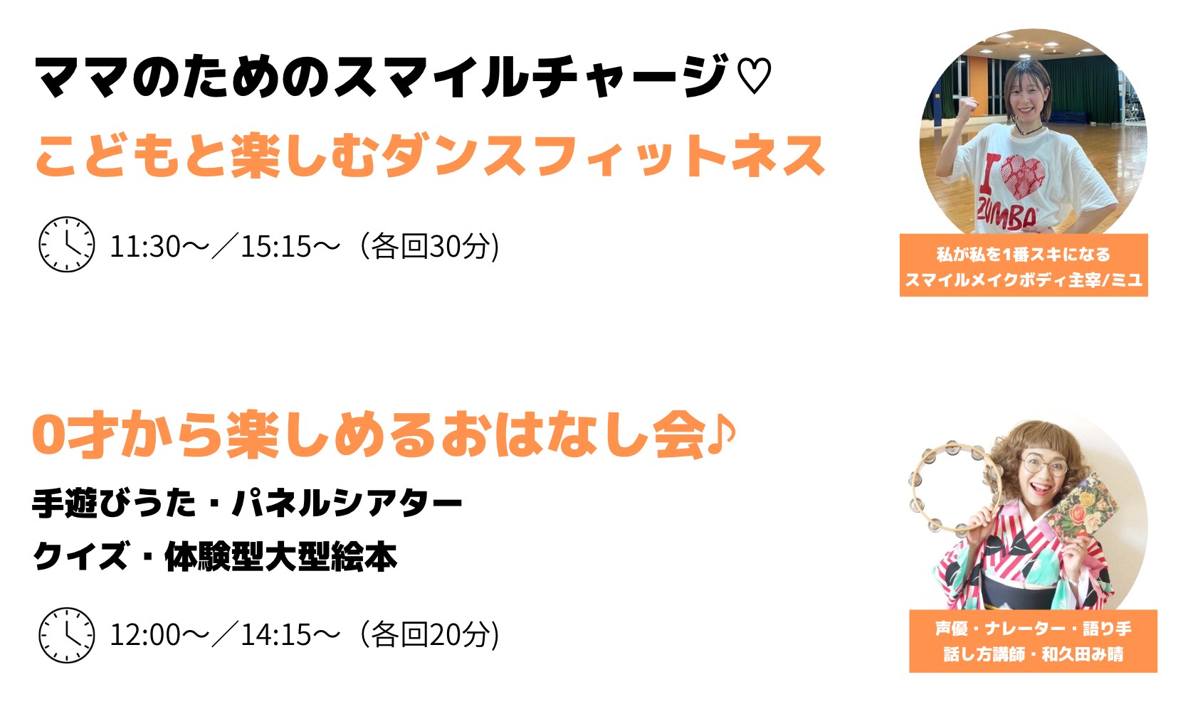 一緒に待てるお子さんであれば、ご一緒にブースやレッスンに参加していただけます。